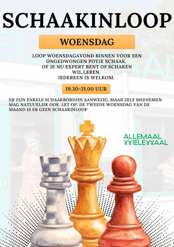 ⚠️ Let op: op de tweede woensdag van de maand is er géén schaakinloop.
