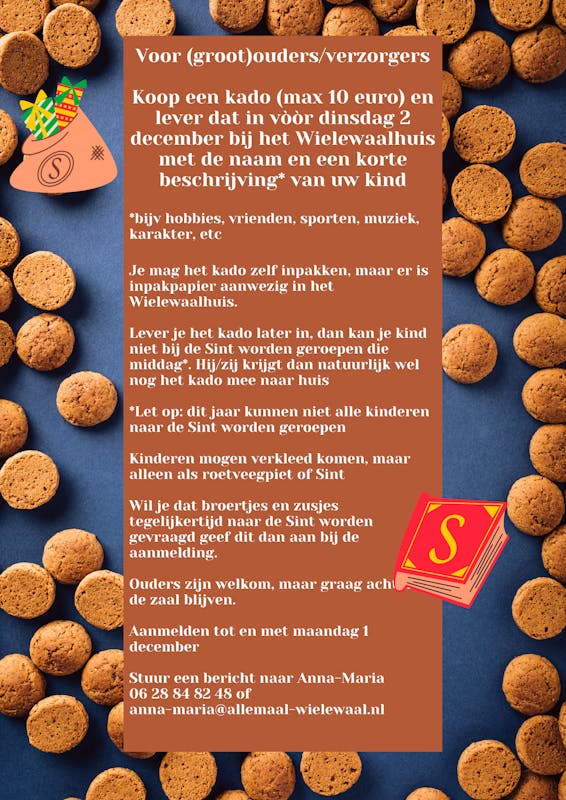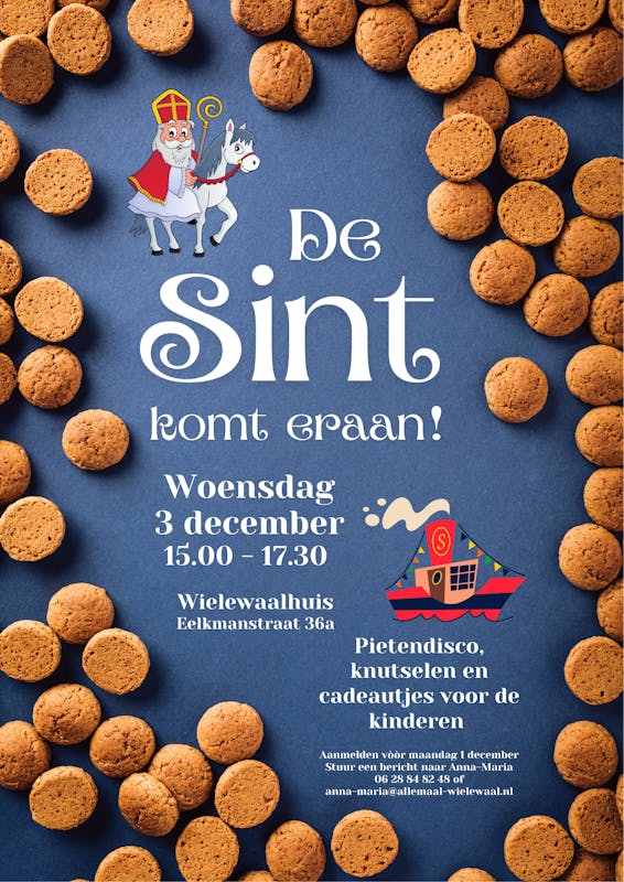 Het is ook dit jaar weer gelukt: de Sint komt naar de Wielewaal. Laat je even weten of jouw kid(s) van de partij is/zijn?
