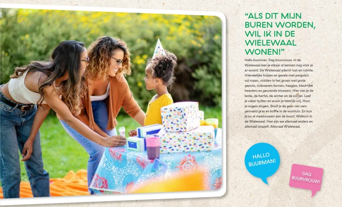 Met elkaar bouwen huidige en nieuwe Wielewaalers samen aan een gezellige wijk. Want we zijn allemaal anders, maar ‘Allemaal Wielewaal’. Dat is het idee.