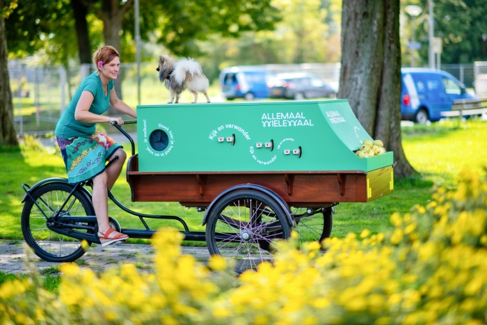 De Wielewaal heeft een bakfiets die je kunt gebruiken om binnen de wijk even iets te vervoeren, om met groente uit de moestuin langs de deur te fietsen of voor een kinderfeestje. Kortom, voor alles wat je leuk en handig lijkt.