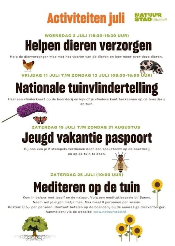In juli en augustus is er van alles te doen bij de stadsboerderij de Molenwei of in de cultuurhistorische tuin.