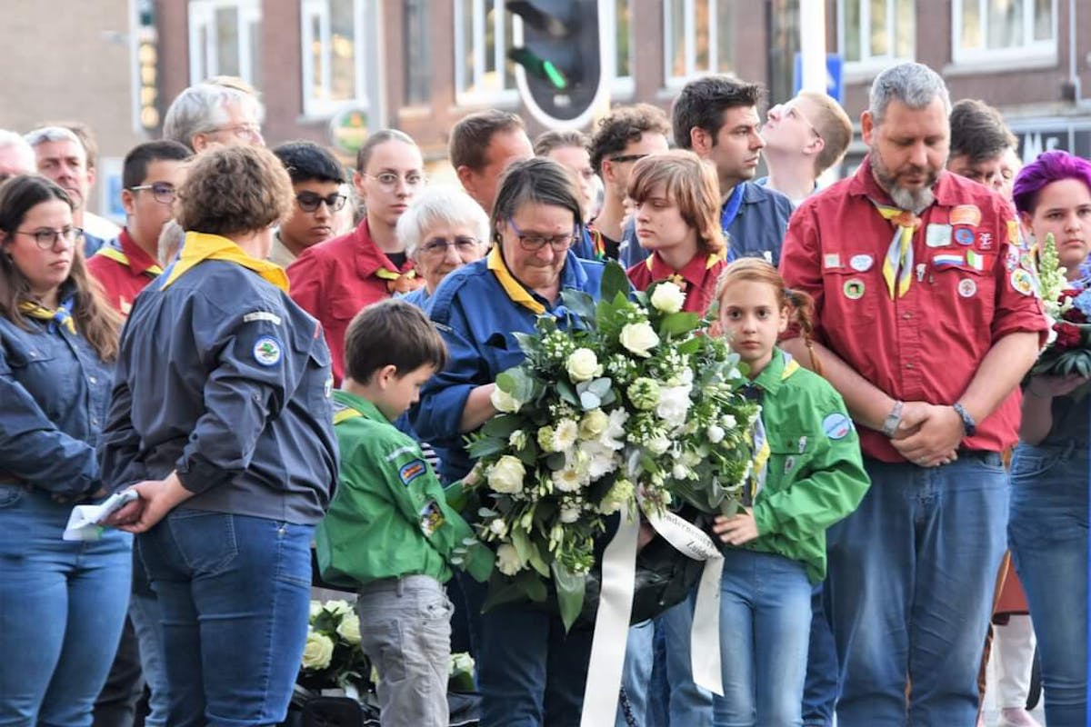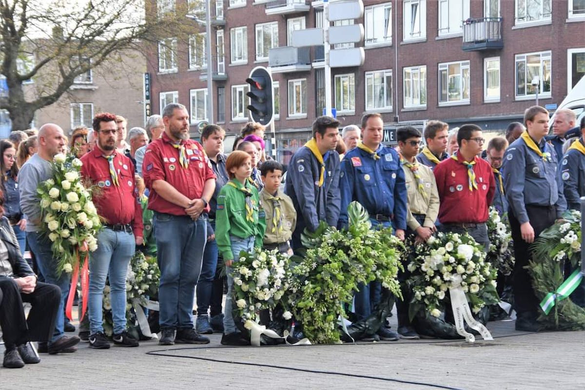 Donderdag 4 mei hebben we als Scouting Metrogroep en Scouting Charlois weer geholpen bij de dodenherdenking bij de Vallende Ruiter op het Zuidplein.