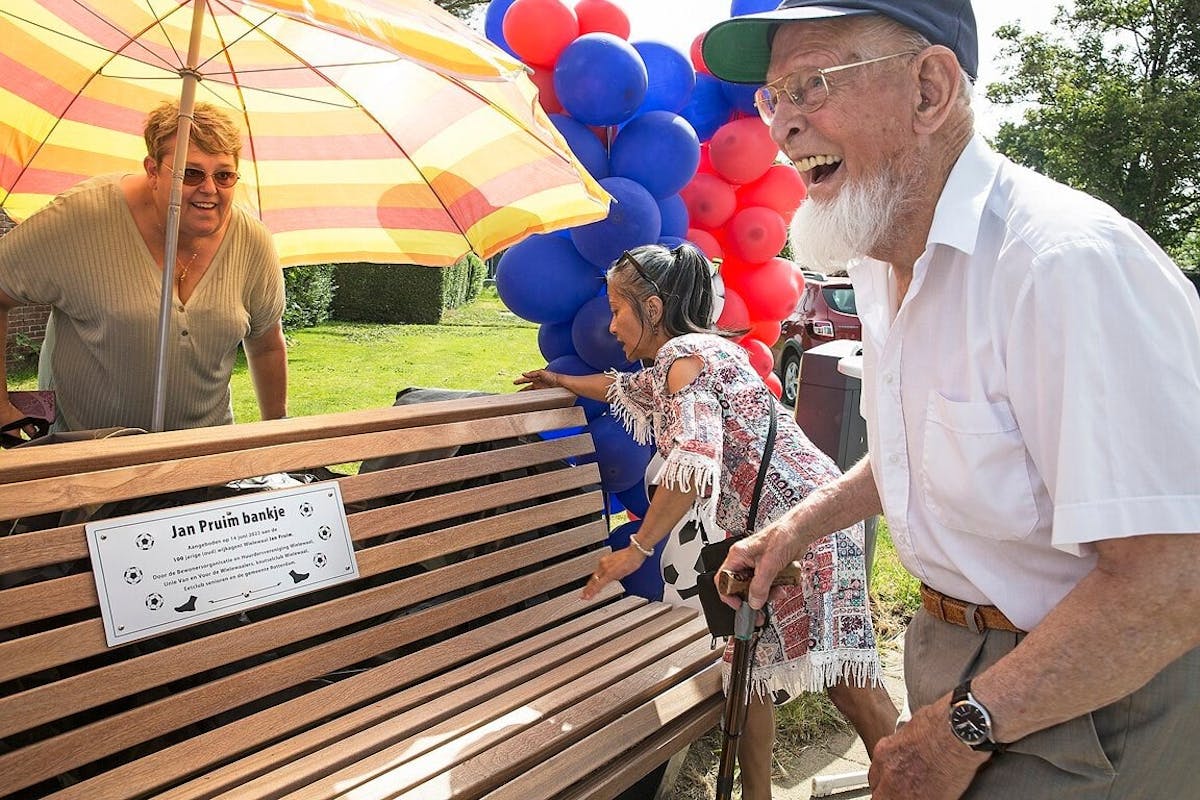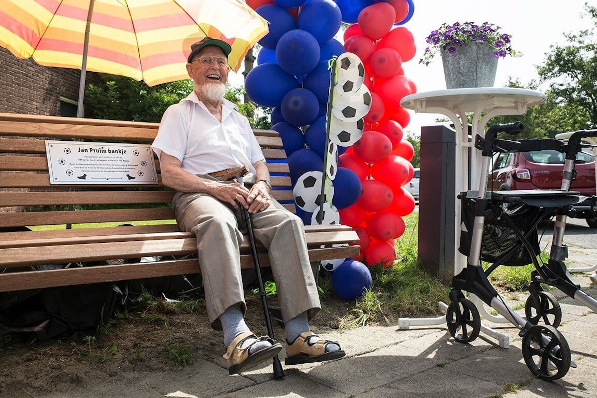 Afgelopen weekend is onze oudste wijkbewoner, de heer Jan Pruim, door de bewonersorganisatie aangenaam verrast met zijn eigen 'Jan Pruim'-bankje. De nu 100jarige oud wijkagent kan in de buurt van zijn woning heerlijk blijven genieten van de wijk. Ook is er ter ere van deze mijlpaal een speciale nieuwsbrief verspreid door de wijk. We hopen dat Jan nog lang van zijn bankje mag blijven genieten.