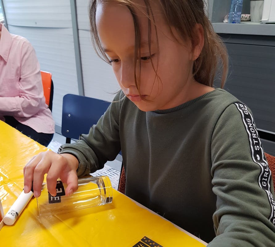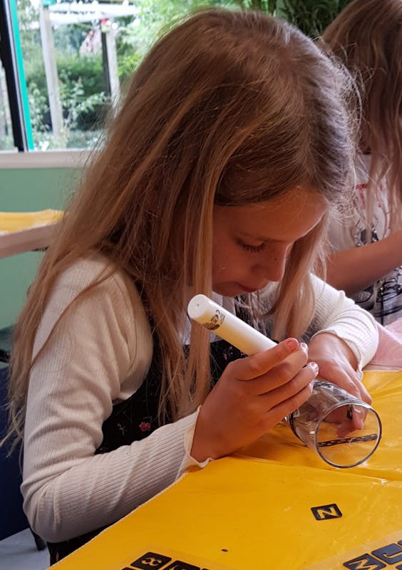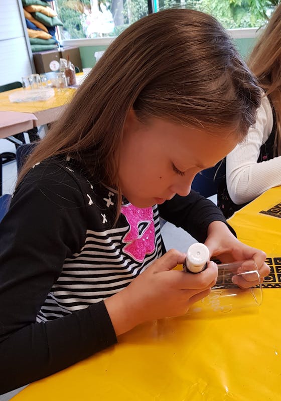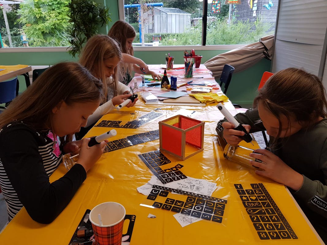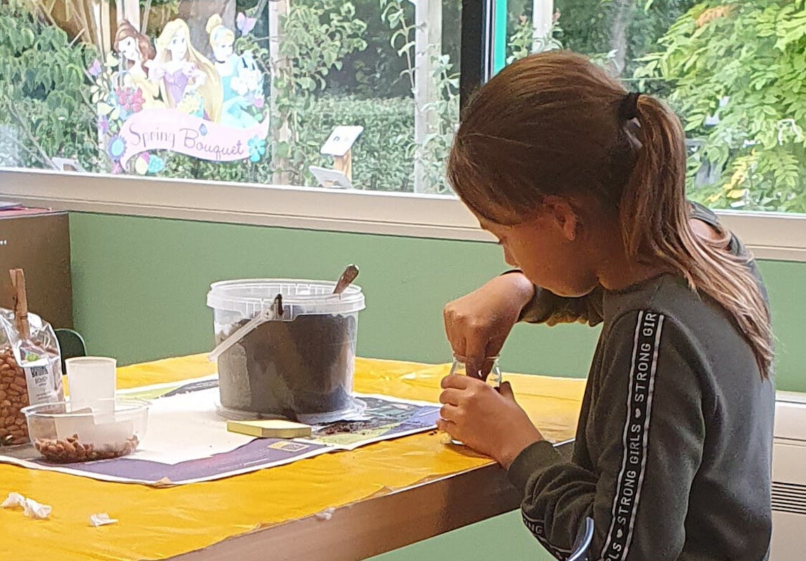 Vanmiddag weer een leuke, gezellige kinderinstuif geweest. We waren creatief met ijsstokjes, vloepapier, glas graferen en potje beplakken en daar een boon inplanten.