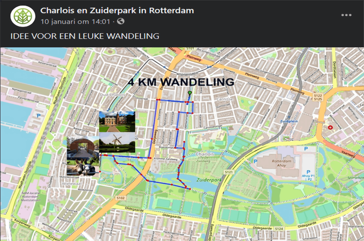 Er zijn verschillende onderzoeken bekend, dat je gelukkig wordt van wandelen. In de Wielewaal weten jullie dat vast allang, want er wordt veel gewandeld in de wijk, met of zonder hond. Op de Facebook-pagina "Charlois en Zuiderpark in Rotterdam' publiceerde pas een mooie wandeling die de wijk ook aandoet. Heb je zelf ook leuke wandeltips? Of lijkt het je leuk om met meerdere mensen samen te wandelen (corona-proof)? Deel het dan op deze website of neem contact op met de kwartiermaker.
