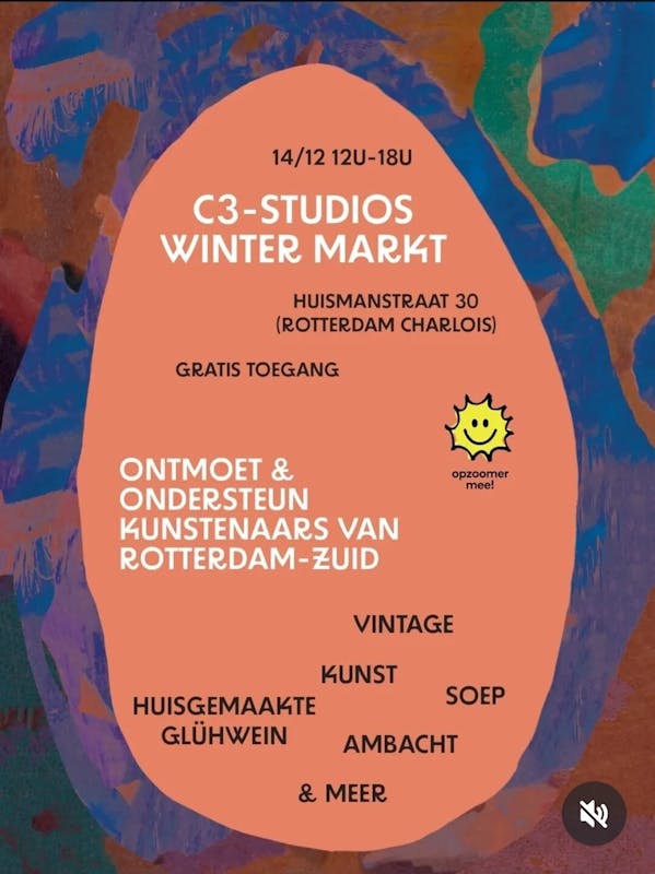 Op 14/12, van 12:00 tot 18:00 uur, openen we de deuren voor een gezellige mix van kunst, vintage schatten, zelfgemaakte glühwein, soep en makers uit Rotterdam-Zuid.