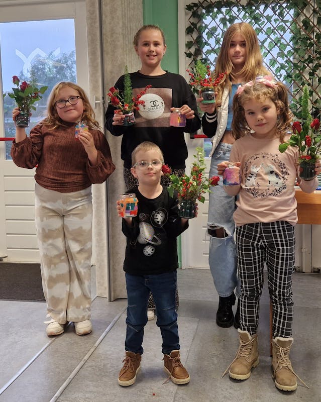 Vanmiddag weer een leuke, gezellige Kinderinstuif geweest. De kinderen hebben een potje versierd, daarna opgeleukt met groen en rode rozen🌹 (niet zo professioneel als met bloemschikken van Shirley) maar is goed gelukt. Ff pauze met drinken 🧃en snoepjes 🍬🍭