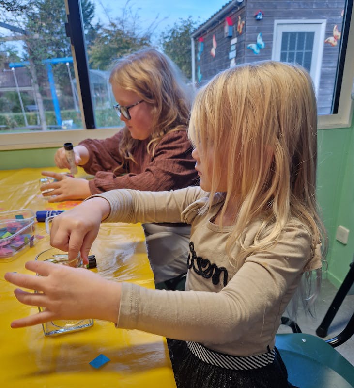 Daarna een waxine lichtje beplakt met vloepapier en ff fotootje (niet iedereen staat erop) gemaakt.