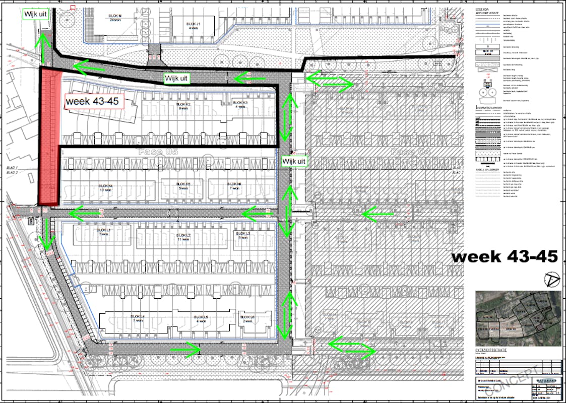 - De Rollostraat blijft open voor verkeer. Via deze straat rijd je de wijk uit.
